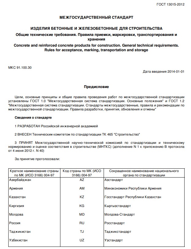 Главная / ГОСТ 13015-2012 Изделия бетонные и железобетонные для строительства. Общие технические требования. Правила приемки, маркировки, транспортирования и хранения