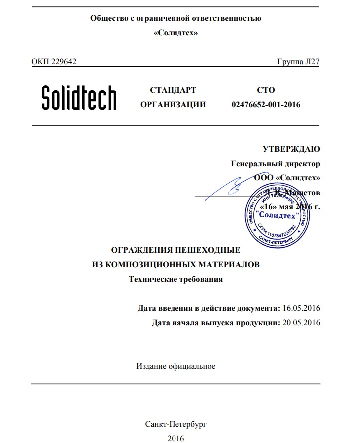 СТО 02476652-001-2016 Ограждения пешеходные из композиционных материалов