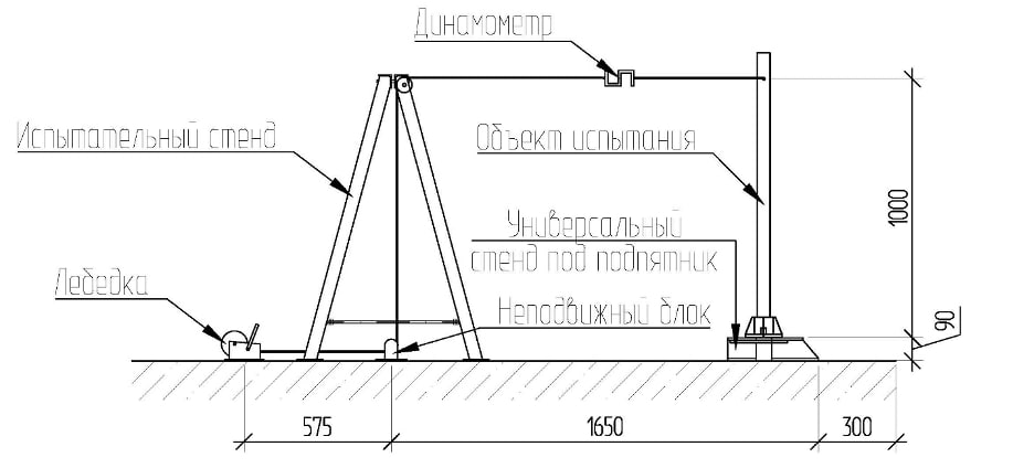 Сосредоточенную нагрузку мы прикладываем с помощью ручной лебёдки, установленной на специальной раме.