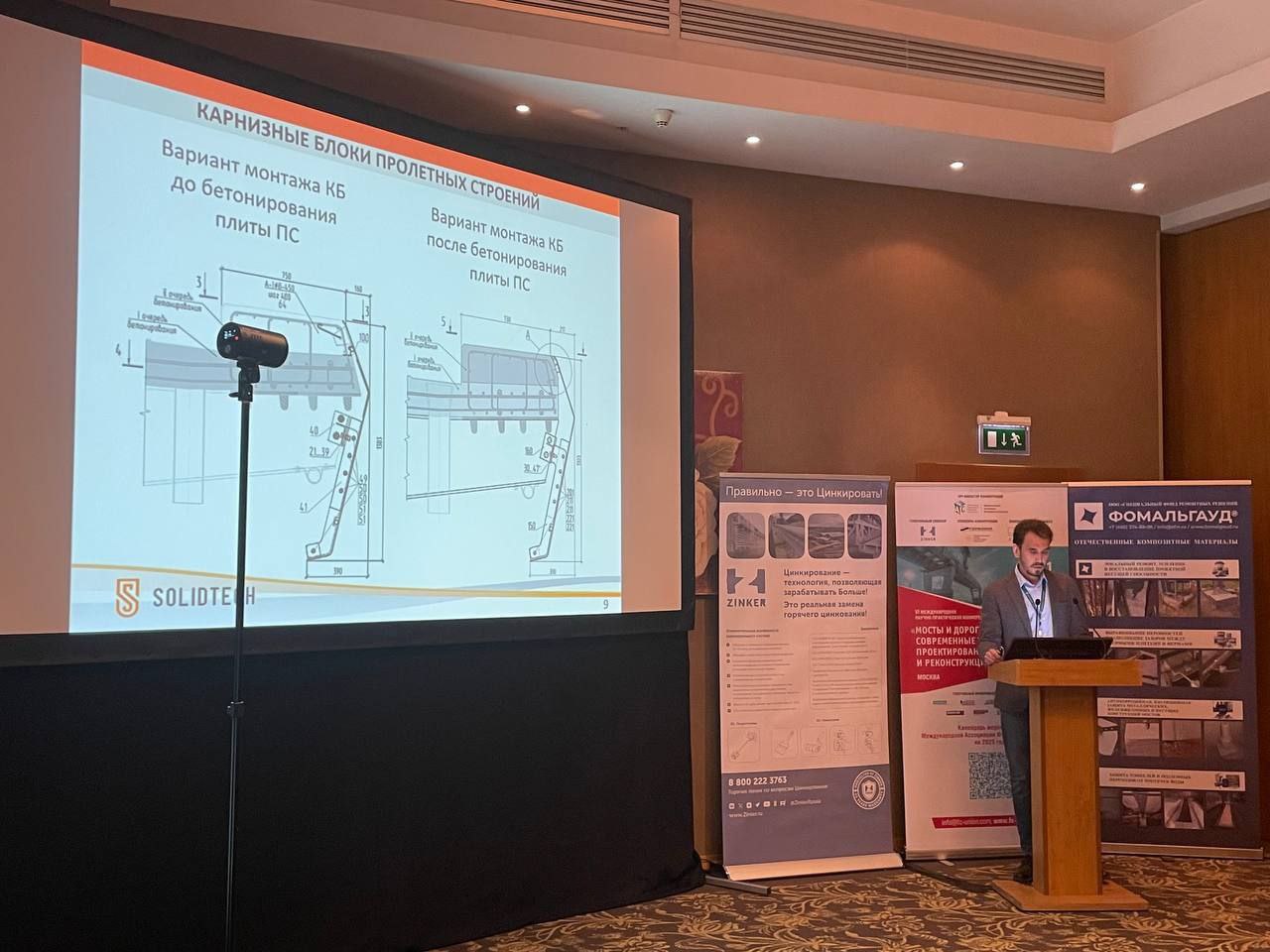 Генеральный директор компании «Солидтех», Даниил Мащетов, представил доклад об использовании композитных карнизных блоков для создания современного облика городских мостов и путепроводов.