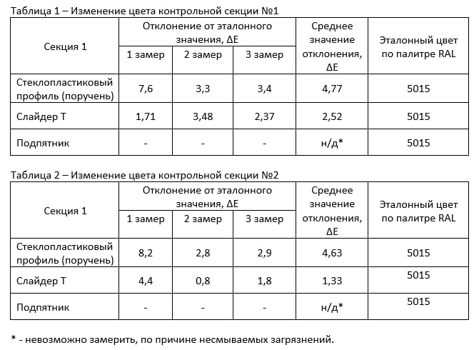 2. Оценка изменения цвета и качества внешней поверхности композитных элементов
