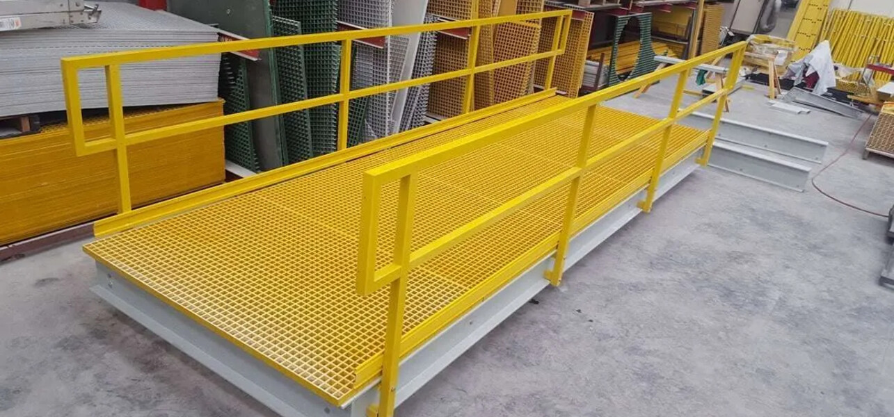 Композитные настилы широко используются в отраслях, требующих устойчивости к коррозии, влаге и химическим веществам. Их применяют на химических заводах, нефтегазовых платформах, в цехах пищевой промышленности, а также для создания пешеходных мостов, морских причалов и платформ общественного транспорта.